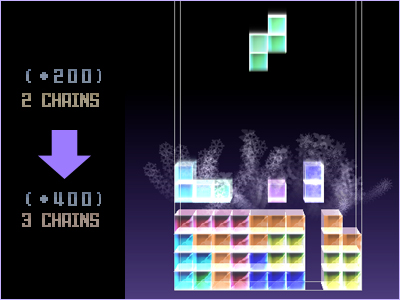 (2連鎖で200点、3連鎖で400点、4連鎖で800点 入ります)